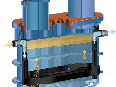 Nádrže sú vybavené technologickými prepážkami a uskladňovacím priestorom pre zhromaždený tuk, ktorý môže byť podľa prevedenia vyberateľný alebo nevyberateľný.